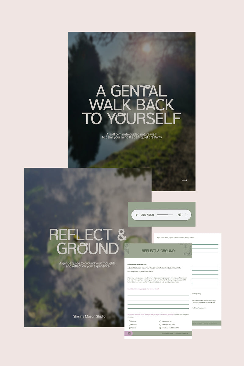 I’m Sherina, a nature-inspired artist helping women slow down, reconnect, and create with a gentler rhythm. While I work on my website, I would like to share something special with you. This little walk is one of my favourite grounding practices, and I can't wait for you to try it.